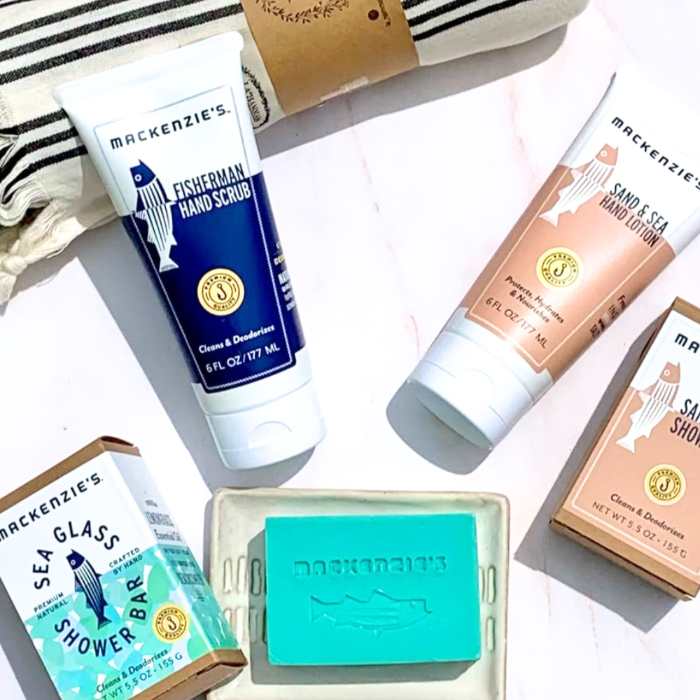 Whether on the boat, in the kitchen or just coming out of the garden, keep your hands smooth and fresh with this super effective hand cleaner. Mackenzie’s Fisherman Hand Scrub is a perfect blend of scouring walnut husks, cleansing soap, and deodorizing lemon essential oil. What started out as a great gift for everyone’s favorite fisherman has since gained a much broader following. Having been featured in Bon Appetit, Good Housekeeping and Epicurious, more and more consumers are looking to get their hands on MacKenzie’s. Our hand scrub has become a favorite of celebrity chefs and home cooks alike thanks to its unparalleled ability to clean and deodorize hands, cutting boards and cast iron after working with garlic, onions or fish. These same qualities have attracted fans within the gardening community after proving to make quick work of stubborn dirt and stained hands. Gifts for Fishermen - Gifts for Cooks - Gifts for Gardeners - Gifts for Men - Kitchen Store - Easter Gifts